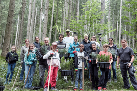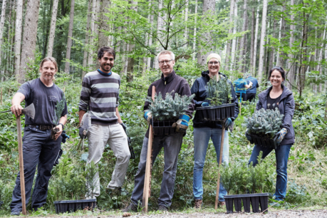 Indem die Bäumchen unter einen reinen, bereits älteren Fichtenbestand gesetzt werden, soll ein klimastabiler Mehrgenerationenwald mit Mischbaumarten heranwachsen und die wichtigen Ökosystemleistungen des Waldes auch in Zukunft gewährleisten.