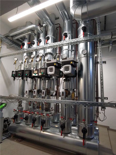 Der Gebäudekomplex wurde bisher durch drei verschiedene Heizungsanlagen versorgt – Illerstrasse 18 „Neubau“ durch eine Elektroheizung mit einer Leistung von 109 kW, Illerstrasse 18 „Altbau“ sowie Illerstrasse 16 „Nordbau“ durch eine Gasheizung (Leistung: 150 kW) sowie Illerstrasse 10 bis 14 durch eine Gasheizung (Leistung: 248 kW) und einer elektrischen Zusatzheizung (Leistung: 90 kW).