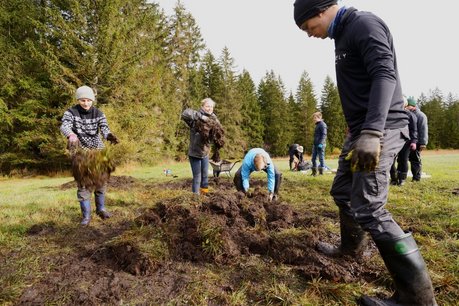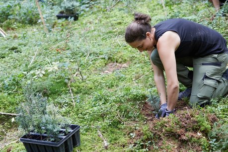 Der Verein Bergwaldprojekt betreut seit 30 Jahren Waldprojekte und engagiert sich im ökologischen Landbau. Labile Fichtenbestände und Borkenkäferflächen werden mit standortheimischen Mischbaumarten ökologisch stabilisiert. Gearbeitet wird immer mit Freiwilligengruppen. Im Rahmen des Klimafonds werden Flächen im Allgäu naturnah wiederbewaldet. An öffentlichen Pflanztagen können auch Mitarbeiter:innen der Bündnisunternehmen teilnehmen. Zum Film auf Youtube