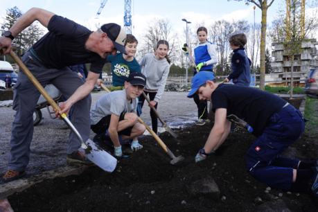 Engagierte Kinder und Erwachsene der DAV Sektion Allgäu-Kempten nutzten Ende April das schöne Wetter, um die naturnahe Gestaltung der Außenanlagen rund um die Kletterhalle voranzutreiben. Auch der Namensgeber der Kletterhalle, swoboda, ist im Bündnis klimaneutrales Allgäu 2030 mit dabei. Geplant hatte die Aktion das Nachhaltigkeitsteam der Sektion, unterstützt wurde sie dabei von Thomas Blodau vom Landesbund für Vogel- und Naturschutz.